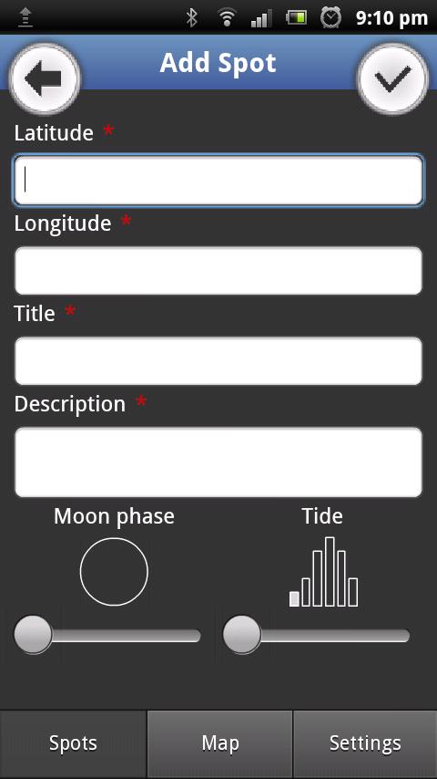Save your fishing spots from your current location or by providing known latitude and longitude, press on navigate button and off you go! This little app will take you to your spot without breaking a sweat. No need to spend hundreds of dollars on buying expensive GPS equipment, sonar or fish finder download this app to your android phone or tablet and off you go!