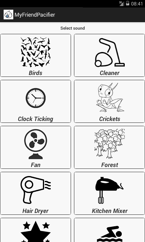 birdsong, vacuum cleaner, clock, crickets, hairdryer, noise of the forest, fan, blender, rain, storm, wind, waves, etc. ..