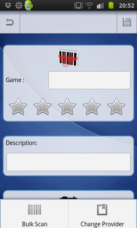 your mobile? This app is for you! With it you can san your differents games and retrieve the data from the different providers (Upc Data and google product, more will follow). You can take a photo of your games, put a rating, description, ...