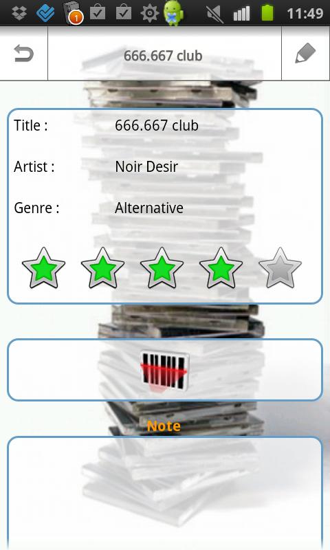 You like music ? You have a big list of CDs and you want to manage them with your mobile ? This app is for you. With it, you can record all your CDs, Cassette, Vinyl,… You can rate each music, record the bar code, take a picture,… You can also import a list from Excel.
