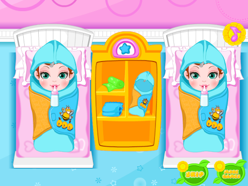 Hello, we are happy because today you chose to visit us here, in this game for kids. We are very happy because our neighbour Clara soon will give birth, she is eager to meet her children, because she will have twins, but she has a problem she is home alone and now she needs the help of a friend. We thought that you might be the person we need. Do you want to help Clara to meet her children? Surely you are a responsible kid and you can do everything you need for our friend to become a happy mother through this game to care for babies. You will have to take care of the children after their birth.