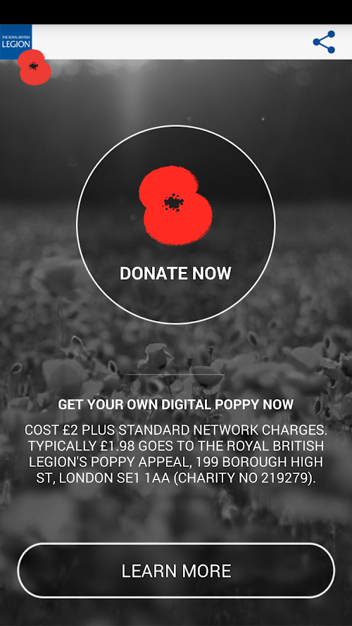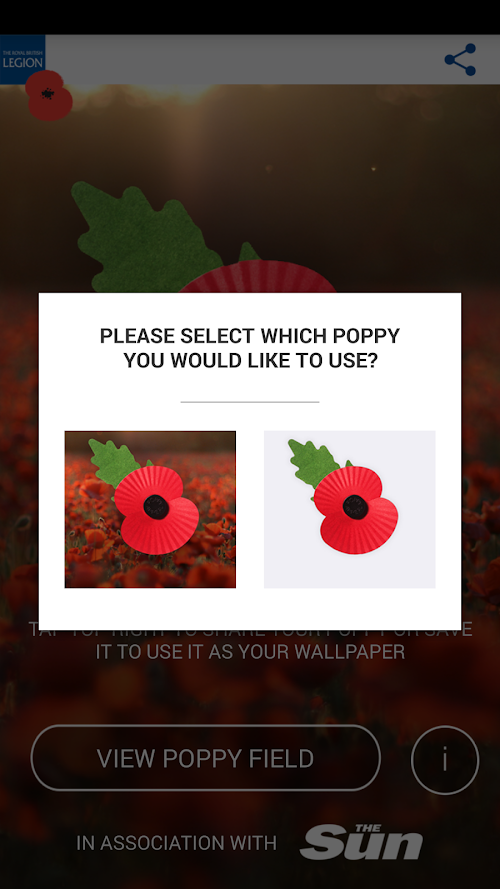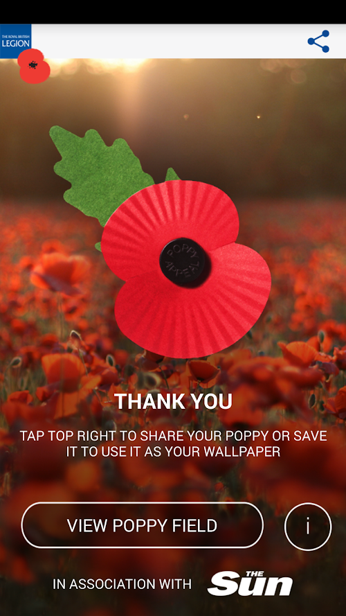 Support the Poppy Appeal. Download your digital poppy to your phone and donate to the Royal British Legion's Poppy Appeal. Share your poppy on Facebook and Twitter to spread the word. Download the Royal British Legion's appeal single by Joss Stone and take a Poppy Selfie. Every donation plants another poppy in our virtual field. In association with The Sun.