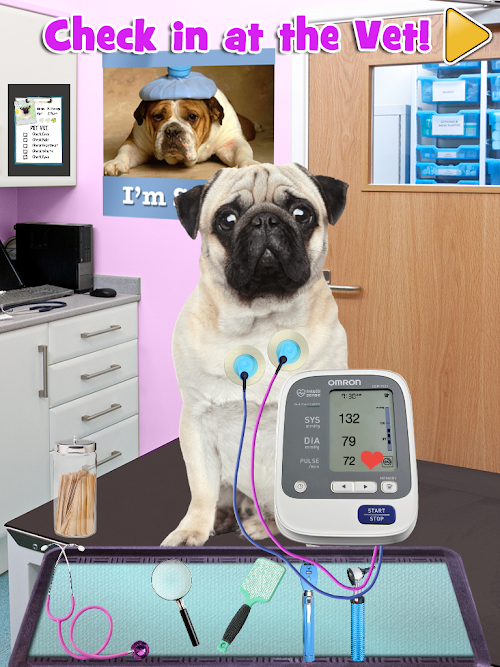 Assess the health of your puppy, kitten, or bird using a variety of tools including a stethoscope, heart monitor, ophthalmoscope, otoscope, X-Ray machine, and more!