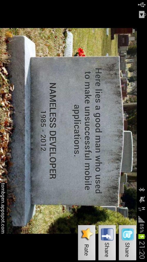 - Create a custom tombstone image with last words/epitaph of your choosing,