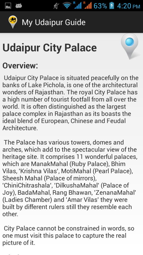 This version of My Udaipur Guide Android App comes with one universal variant which will work on all the Android devices.