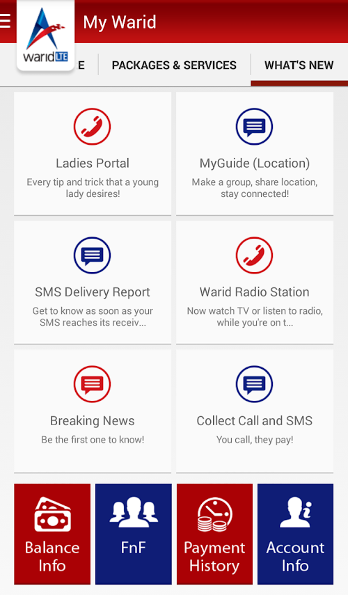 The concept of providing a mobile app to manage your Warid account brings great convenience to Warid Customers.