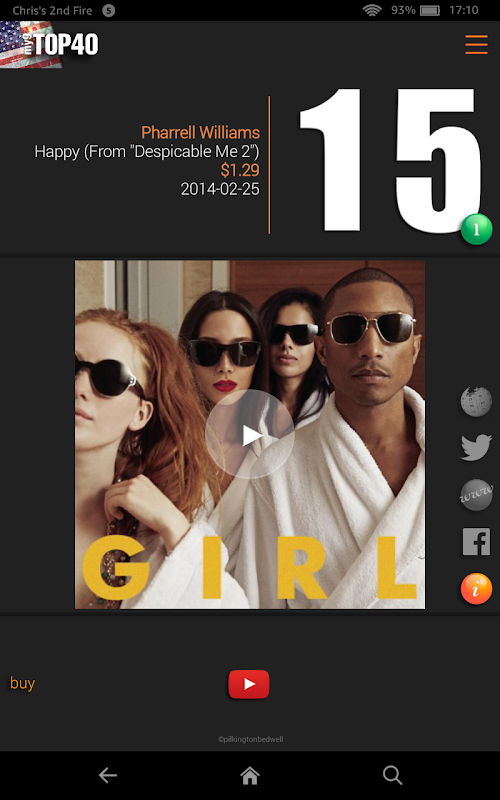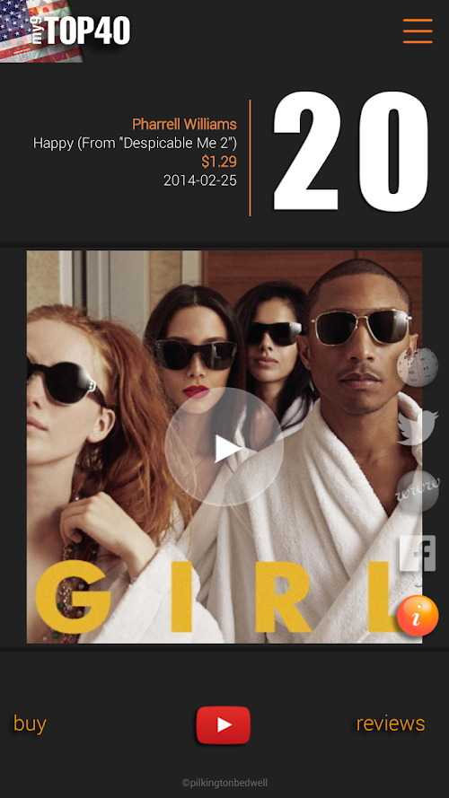 Keep track of the Top 40, watch the official YouTube music videos, preview & buy songs from Amazon, check out the stars' tweets, websites & Facebook page - all in one awesome App!
