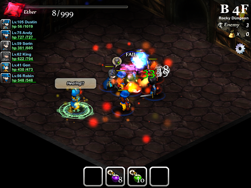 4. Once a battle starts, players watch it. If needed, you can use items to recover HP or ether.