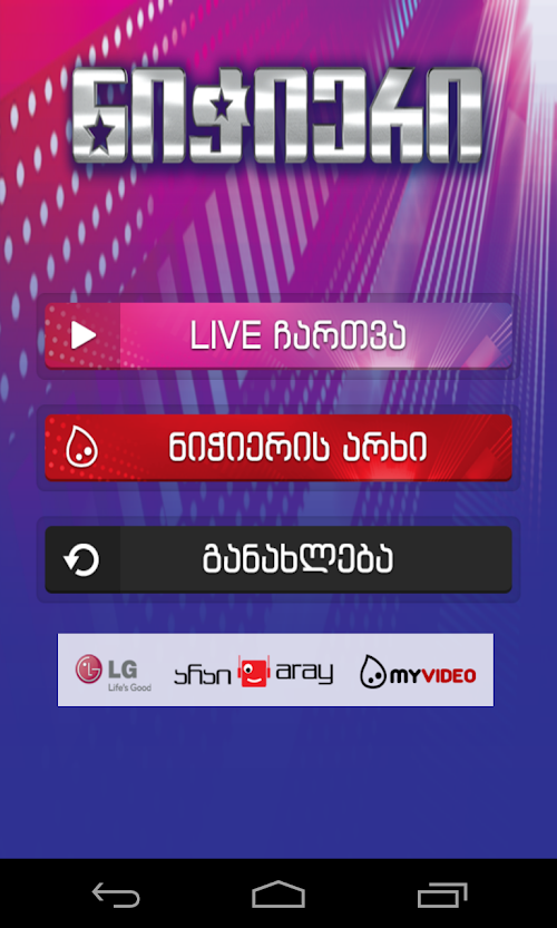 Georgian Talent show (Nichieri) official android application. Watch Georgian Talent Show Online on your mobile or tablet devices.