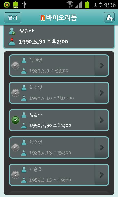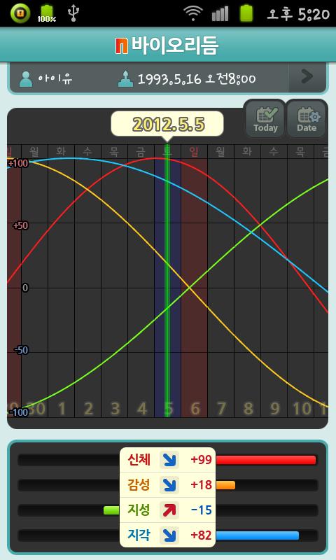 [N Biorhythm] is a application to predict four(physical, emotional, intellectual, intuitive) cycles in your life based on your birthday.