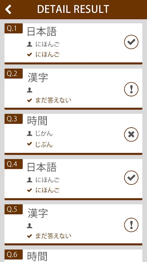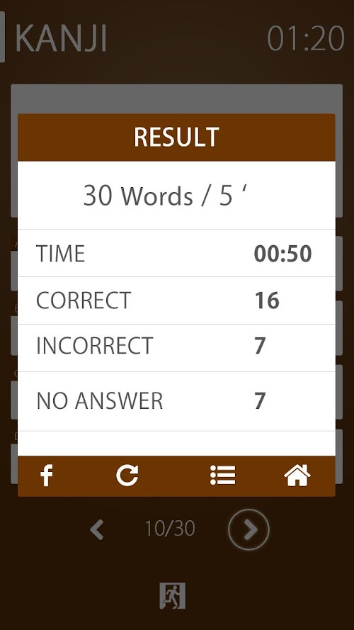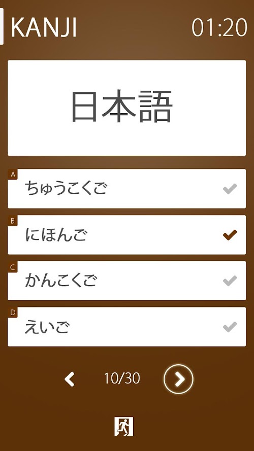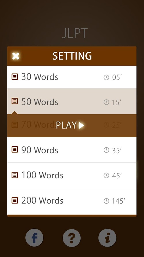 - Choose testing mode ‘GOI’(語彙), our data of about ~6,000 words helps you practise better everyday. We currently set a range of 10 seconds to memory a word. We are researching in order to adjust a suitable value in next version.
