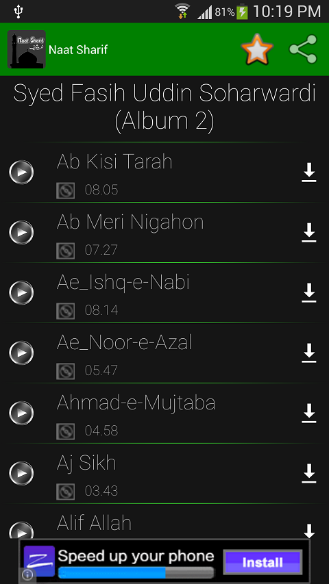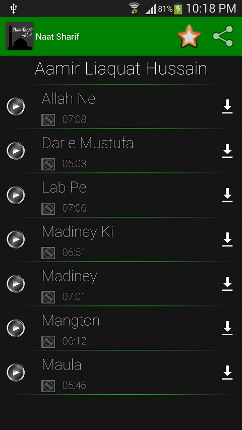 Naat Shareef App is an elegantly designed Islamic and the best Naat application which has the largest collection of Naats in different languages. Islamic naat shareef app is very simple and easy to use; you can easily listen to the famous Naats of Punjabi, Urdu and English. Punjabi Naat Shareef requires a lot of effort to find Naat on internet and then download it on your phone but this latest naat shareef app has changed the old way of listening to Naats, now you can easily find your favorite Naat khwaans and can listen Naats from our repository by just simply installing the app. The best naat collection app has best quality sound track of Naats which will give you spiritual satisfaction whenever you want.