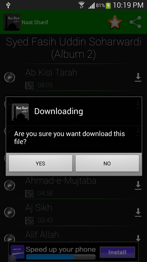 This version of Naat Shareef App Android App comes with one universal variant which will work on all the Android devices.