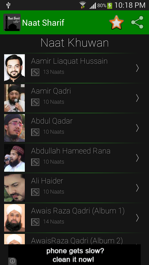 Naat is a special kind of poetry in which we praise our Holy Prophet Hazrat Muhammad (PBUH). And the person who recites Naat is known as Naat Khawans. This app has a huge list of Naat khawans like: