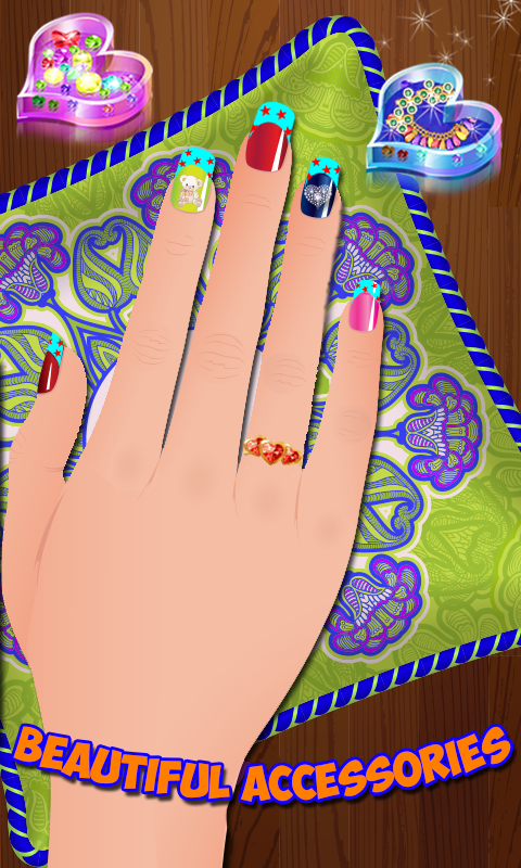 Cut, file, polish and chose from tons of nail art colors, stickers and rhinestones available pamper those nails with this most luxurious Nail Art Dress Up Salon Game