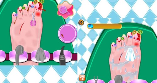 Hi girls, are you ready to be a nail doctor and do pedicures? In this game you can be both! In this amazing game you will have to take care of a really bad injured foot. Clean it, remove the infections and stitch the wounds! After you have taken care of the foot you can decorate everything, the nails, ankles and the feet! So are you up for an amazing adventure? Be a real feet doctor and pedicure spa coworker in the amazing game!