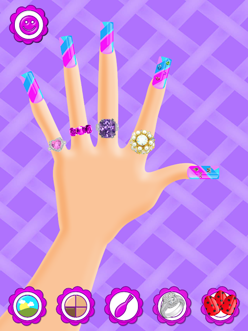 Start off by choosing some backgrounds, nail styles and lengths, and start designing your very own nails using a palette of colors, polishes, bling, stickers, rings, accessories, acrylics, and more!!