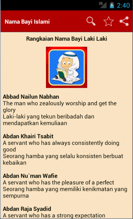 If you are looking to download other versions of Nama Bayi Islami Android App, We have 1 version in our database. Please select one of them below to download.