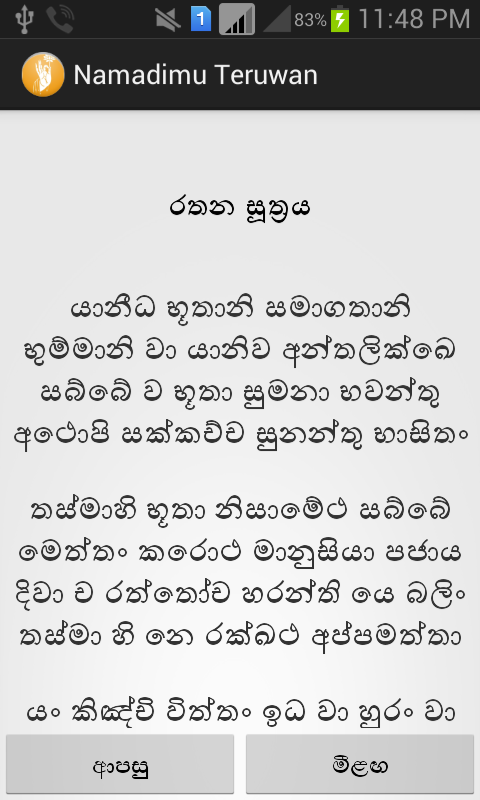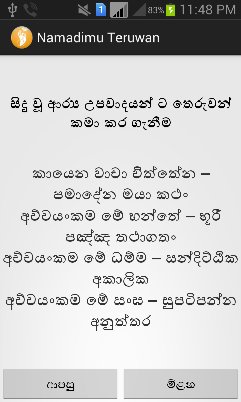 This version of Namadimu Teruwan Android App comes with one universal variant which will work on all the Android devices.