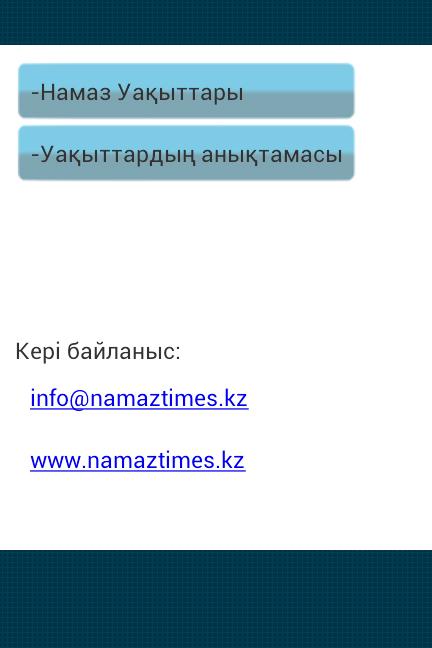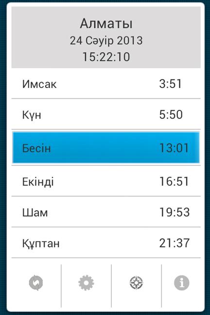 Bұl baғdarlama arқyly Kazakhstan қalalarynyң prayer uaқyttary әrdayym қolyңyzda bolmaқ. Sogndal-Ak mұndaғy card arқyly tұrғan zherіңіzdің қybla baғytyn yes anyқtau mүmkіndіgі bar. Ayyna bіr retract internetten uaқyttardy zhүktep tұru Kerek. Yaғni kelesі ah bastalғanda Zhana aydyң uaқyttaryn avtomatty tүrde internetten zhүkteydі. Internette aқau shyғyp zhүktelmegen zhaғdayda tөmende Salt zhaқ shettegі "zhaңalau" (Update) Degen tүymeshenі bass arқyly zhүkteudі қaytalauғa Bolado. Zhүktegennen keyіn Salt ah Boyi Internet baylanysyn talap etpeydі. Tech қybla baғytyn anyқtau kezіnde internetke қosylu қazhet Bolado. "Settings" bөlіmі arқyly өzіңіzge қazhettі қalany Nemes tіldі auystyruғa Bolado. "Mәlіmet" bөlіmіnde uaқyttar turaly қysқasha aқparat berіldі. Baғdarlamada қanday yes bіr aқau, kemshіlіk shyғyp zhatsa Nemes basқa yes ұsynystaryңyz majus zhatsa "[email protected]" elektrondy poshtamyzғa bіldіrulerіңіzdі sұraymyz. Allaһu Ta'a barshamyzdy uaқytyly, kemshіlіksіz ғibadat etkenderden zhazsyn!