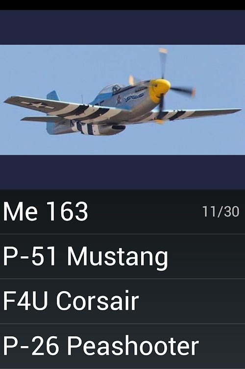 Test and improve your knowledge of military and civil aviation with this fun and addictive trivia game. Features around 2500 images of almost 800 aircraft ranging from the Wright Flyer to aircraft currently in development.