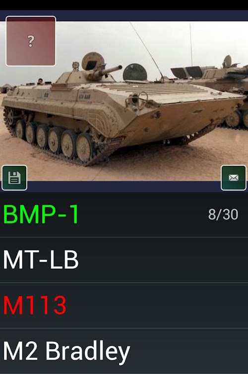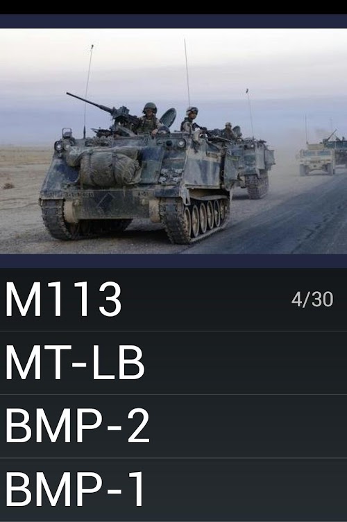 Note that if you set your language to English in the application (Menu-> settings-> Language), more images will be available. Not all quiz amoured vehicles have translations into all languages.