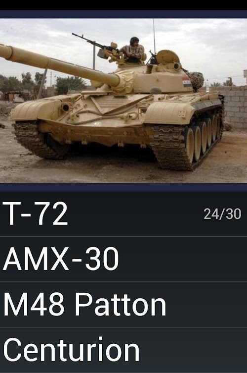 An image based trivia quiz game and guide for amoured fighting vehicles. Includes some armoured personnel carriers, tank destroyers, and self propelled artillery.