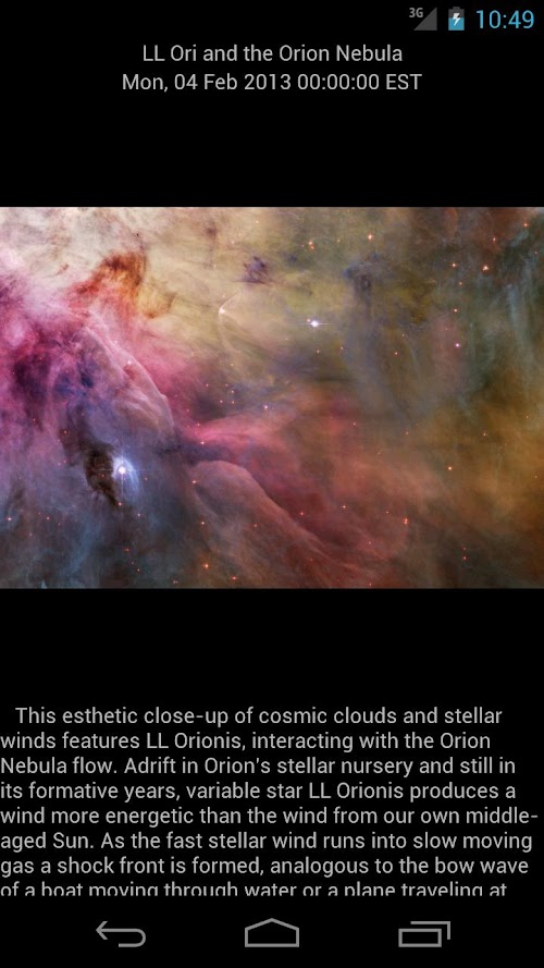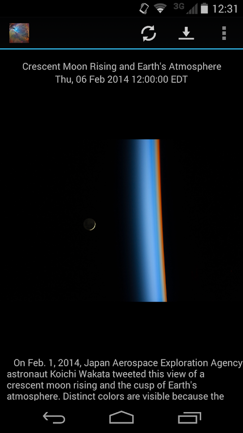 An app that retrieves NASA's image of the day. You can save the images to the gallery and set them as your wallpaper. Please note images do not update on weekends and holidays.