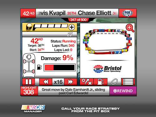 NASCAR® MANAGER is the all new official NASCAR game that puts you in control! Take the Crew Chief seat in the most popular motorsport in North America. Decide your strategy, run the best tactics and make the calls that guide your driver to victory! Are you ready for a real challenge?