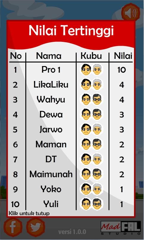 *keyword : nasi, tumpeng, presiden, pemilu, pemilihan umum, black campaign, makan, suit, jepang, prabowo, jokowi, JK, Jusuf Kalla, hatta, capres, cawapres. golput, visi misi, 2014, game, fitnah, anarkisThe Commission has established partner and Vice President 2014 presidential candidate officially on June 1, 2014 ..