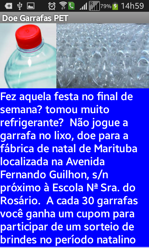 Pela primeira vez o município de Marituba, na Região Metropolitana de Belém, terá uma festividade temática e ecológica de Natal. A primeira edição do “Natal dos Sonhos” de Marituba será lançada no próximo dia 19, com uma programação diversificada até o dia 11 de janeiro de 2015. Neste período o que será mostrado na praça Matriz de Marituba e no Ginásio Poliesportivo de Marituba será o resultado de um trabalho que já vem sendo feito desde junho de 2014 em Marituba, um ciclo que envolve toda uma cadeia produtiva de coleta e reciclagem de garrafas pet, que no momento já somam meio milhão de garrafas.