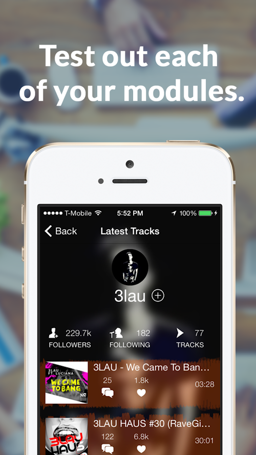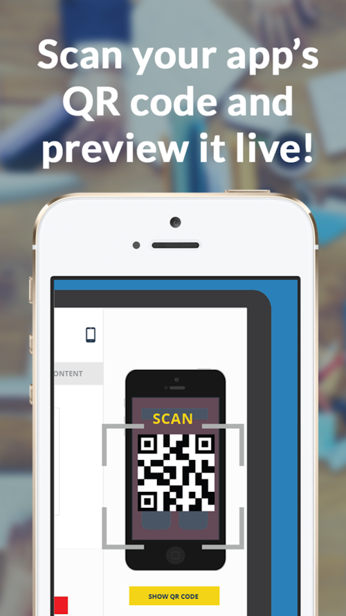 Simply build your app using our web application and scan the app's QR code to test it out live on your device!