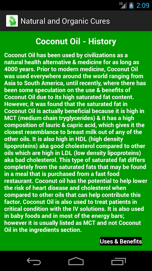 This app features 24 of the best natural and organic cures and remedies for a variety of ailments. It covers a lot of topics such as Asthma, Cancer, Throat Infections and Weight Loss. Each of the topics is equipped with a little history about the natural product, followed by detailed recipes and instructions on how to proceed with using the remedies to attain better healthy living lifestyle.