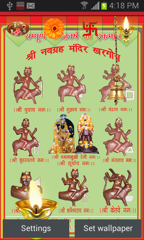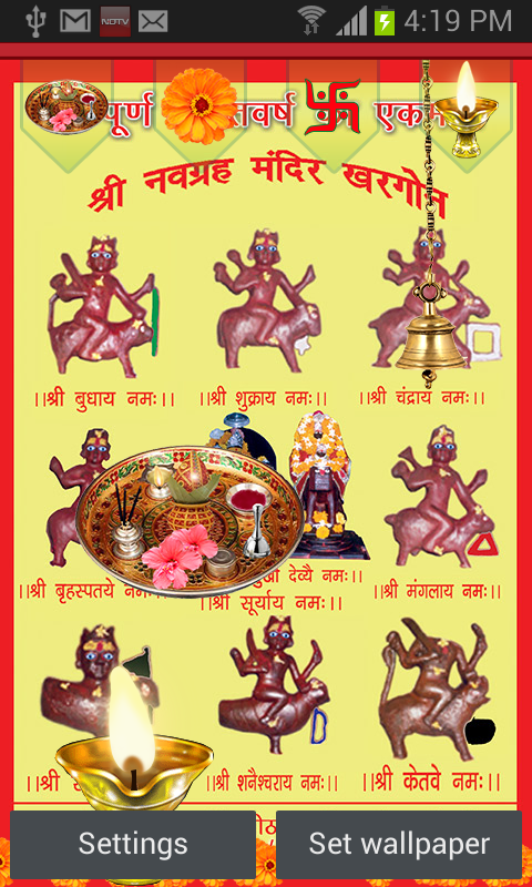 now you may use live wallpaper from 600 years old navgrah mandir khargone. In this you may find all nine planet wallpaper such as -