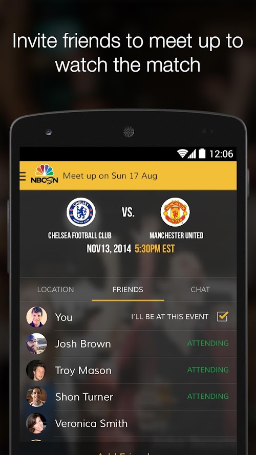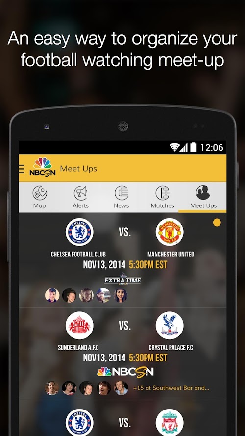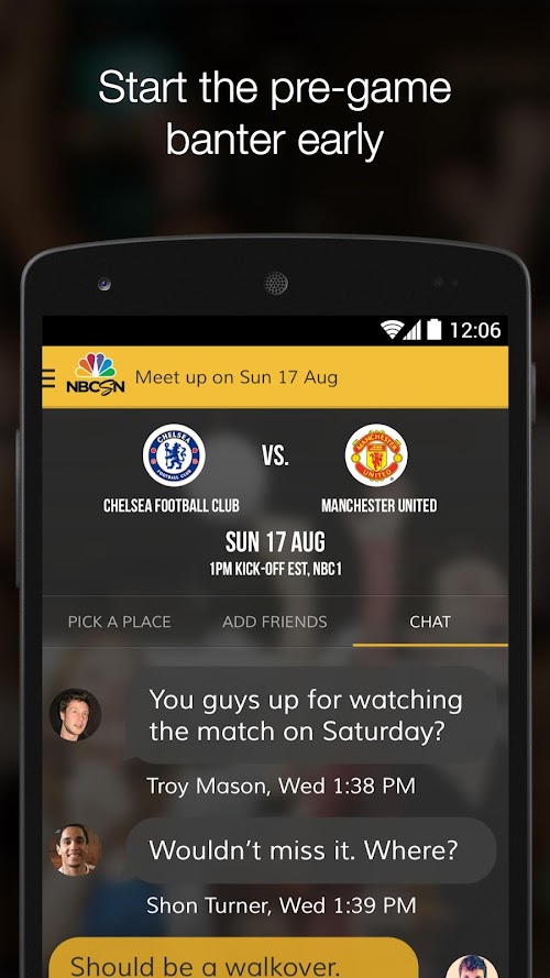 Diehard football (soccer) fans know the only thing better than watching football is watching it surrounded by other fans. But sometimes, finding other fans to watch with can be a challenge. The NBC Sports MatchMaker app. solves that problem by enabling users to locate, chat, and meet-up with other fans of their BPL team, so they can enjoy the thrill of watching matches together.