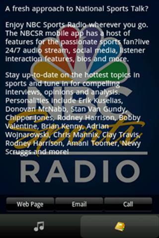 Enjoy NBC Sports Radio wherever you go. The NBCSR mobile app has a host of features for the passionate sports fan—live 24/7 audio stream, social media, listener interaction features, bios and more.