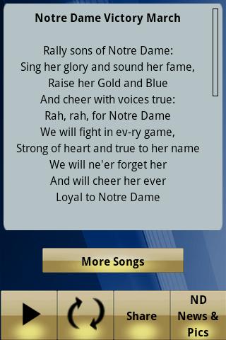 Experience the explosive power of Notre Dame Gameday! Play the top Notre Dame fight songs whenever & as LOUD as you want; at the pregame party, during the game, after a score, celebrate a victory, or taunt a rival. Includes MUSIC & LYRICS for “Notre Dame Victory March”, “Notre Dame Our Mother”, “Victory Clog”, “Celtic Chant” & top Notre Dame logos. All content is officially licensed. Easy sharing link to friends on Facebook. It’s like bringing the band & cheerleaders with you! GO IRISH!