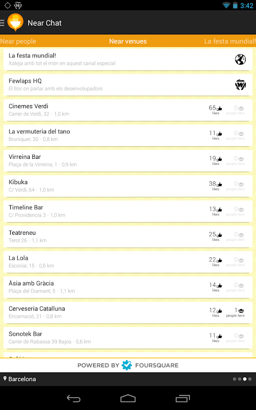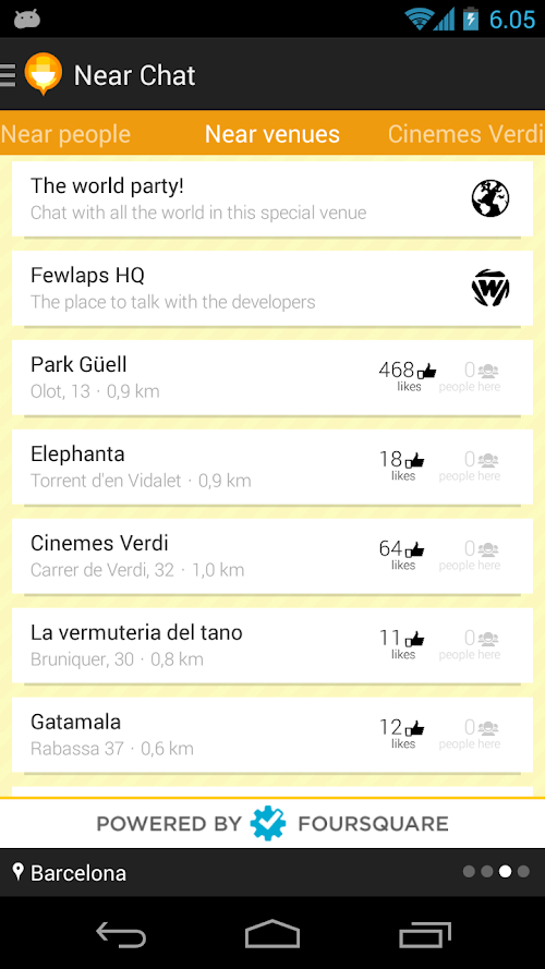 Are you interested in talking with the people who is in the same venue than you? Cool! Choose a venue from our venues list and start chatting with the people who is very, very near of you.