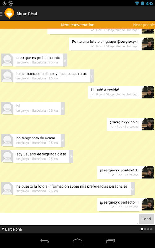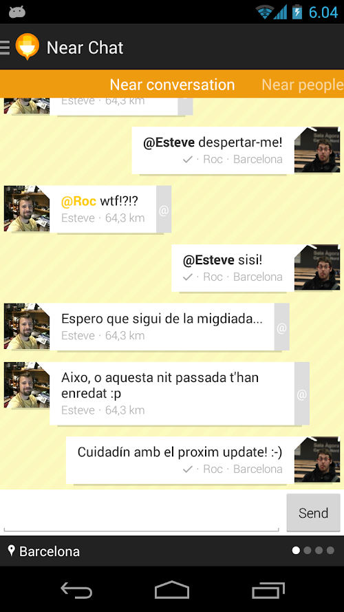 Near Chat is an app to chat with people near you, offering a common room for all people to talk about what's interesting in the place you share.
