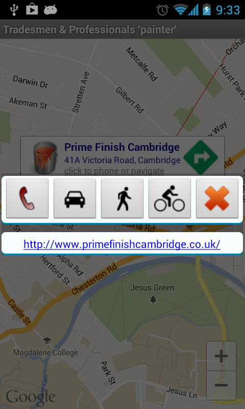 You can PHONE or NAVIGATE to the selected people or company from the list returned in the search.