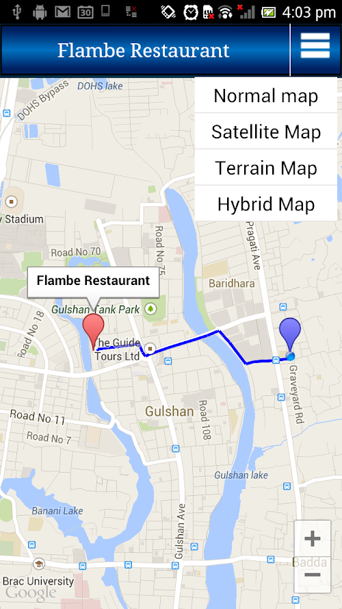 You can also see the selected location in the Google map and also found a direction on Map to go to that places.