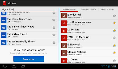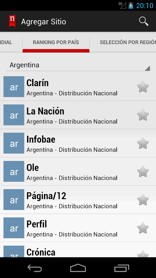 * Tab "Top Ranking" - Favourite Neonews community: From here you can see the top 5 of your region more News Sites selected as favourites, as well as the top 10 news sites worldwide. This tab also lets you choose from this list new favourites that are of interest.