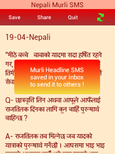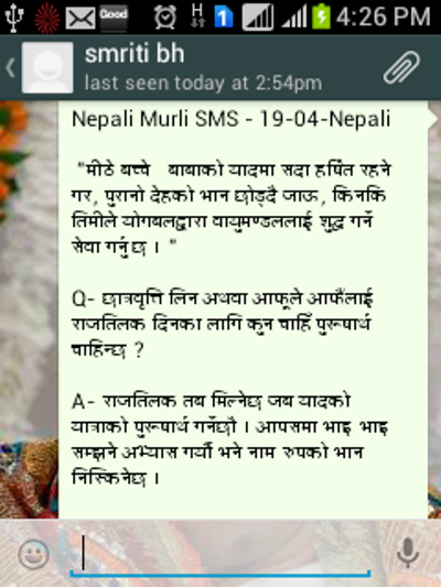 Easy and simple way to get Today's Nepali Murli into your message Inbox.