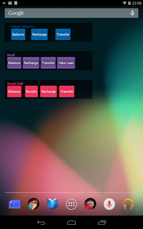 To add app widget on the home screen either long press on the home screen, widget box pops up or go to widget tab in the app screen, and select the "Easy Recharge widget" with your appropriate sim preference Ncell, NTC and Smart Cell.