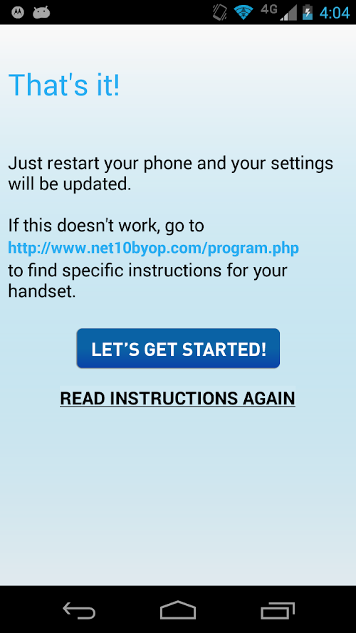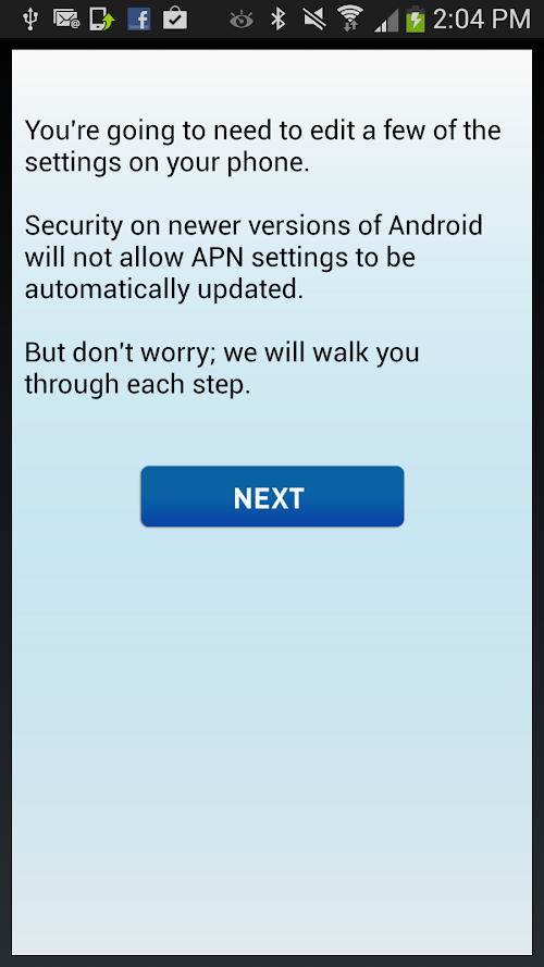 2. If your phone runs an Android operating system than Ice Cream Sandwich (4.03) or LATER, this App will provide detailed instructions on how to manually update your Data and Picture Messaging settings.