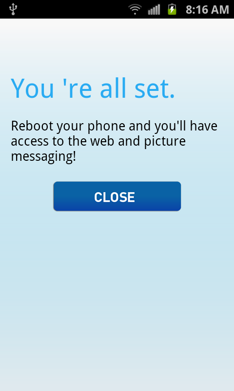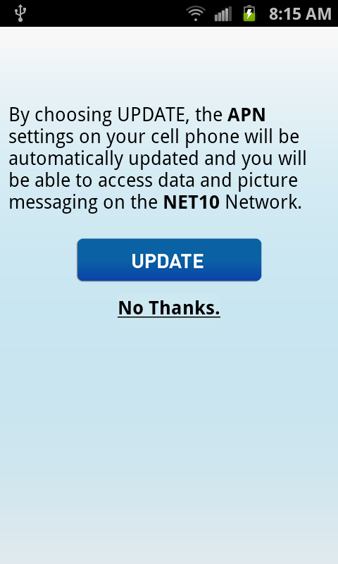 1. If your phone runs Android operating system EARLIER than Ice Cream Sandwich (4.03), your Data and Picture Messaging settings will update automatically.