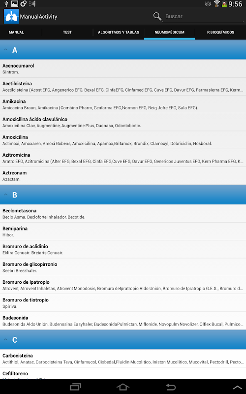 El profesional sanitario podrá encontrar por orden alfabético los fármacos utilizados en el manejo de las patologías respiratorias, así como sus principales características.