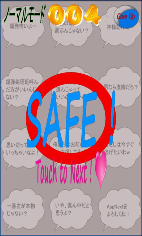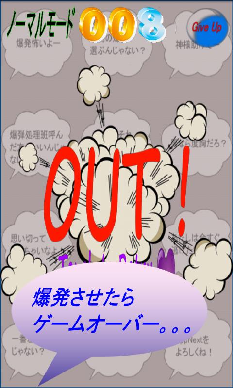 Choose one of the bomb with five, this app is a simple casual game which is out (game over) Safe, if if it does not explode explosion.
