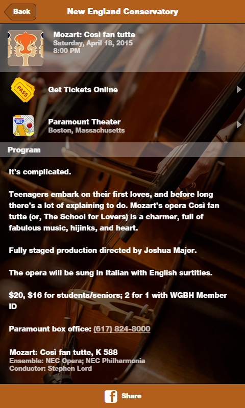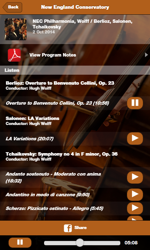 Listen to selected live recordings on your mobile device. All repertoire information including composers, works, soloists, conductors and ensembles is included. High quality audio options are available if you are connected through a high speed network.