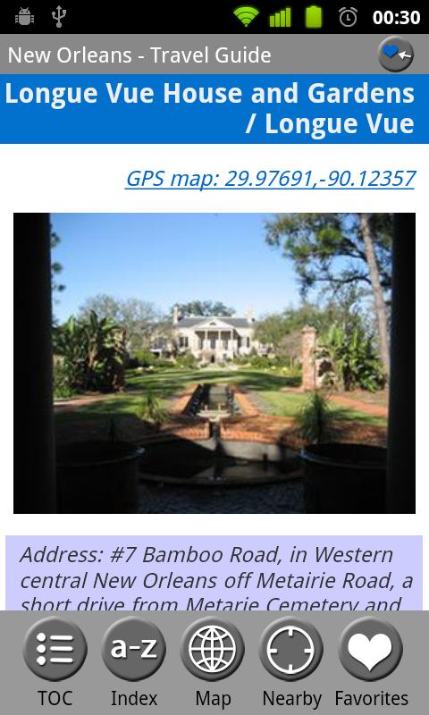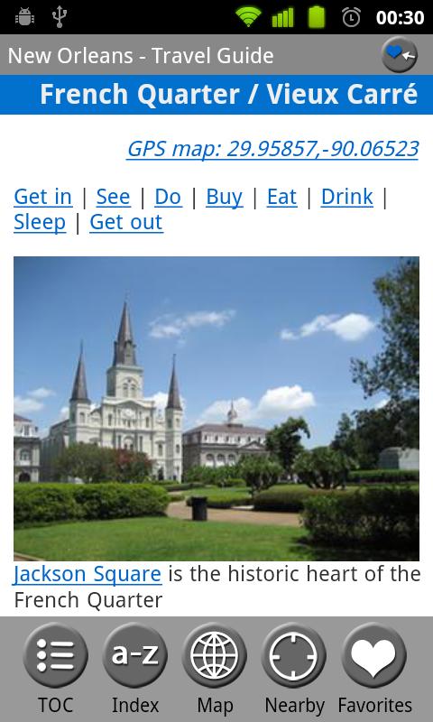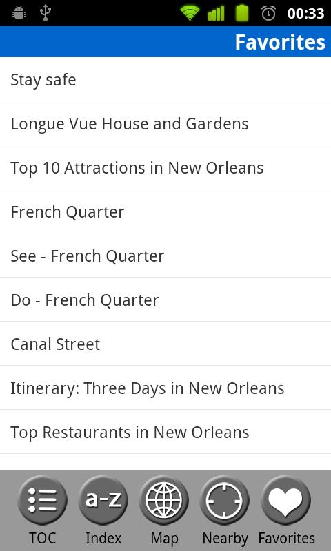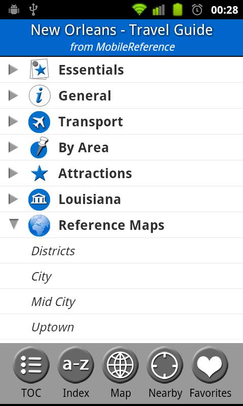 MobileReference Travel Guides provide detailed, practical information about attractions, landmarks, transportation, cultural venues, dining, lodging, history and much more. They are indexed alphabetically and by category, making it easier to access individual articles. Attractions can be viewed on an offline GPS map along with your current location so that you can easily find attractions near you as you explore the city.